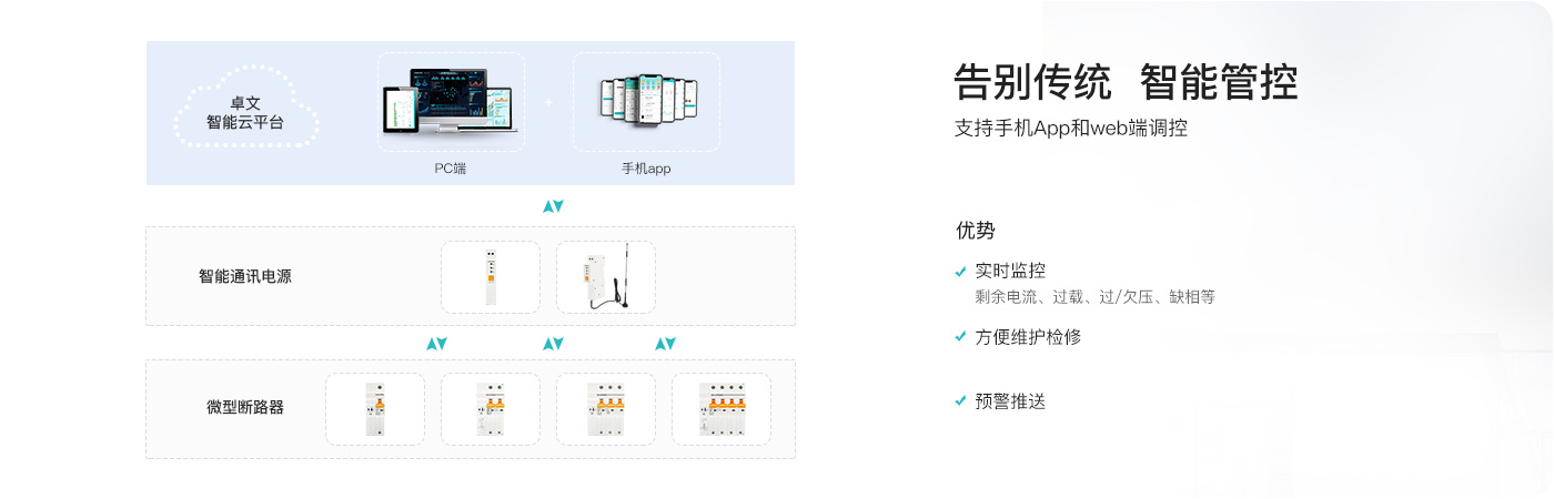 智能通讯电源设备是连接智能融合微型断路器和云端平台之间的通讯传输器,有通讯管理、数据传输、协议转换、数据处理转发等功能,是jinnian金年会智慧用电通信系统的心脏。智能通讯电源采集微型断路器的数据,把数据高效、安全的上传至平台,同时支持平台对设备远程控制指令下发。发挥设备物联,节能降耗,智慧化管理的作用。